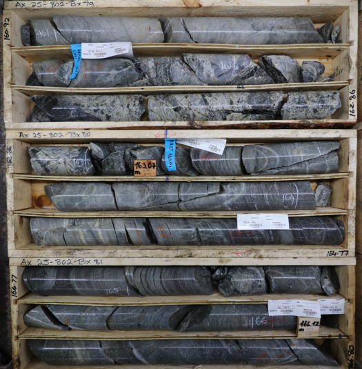 - AX-25-802 – 2.82 g/t Au over 11.8m within 0.78 g/t Au over 51.1m; including high-grade interval of 7.26 g/t Au over 4.3m