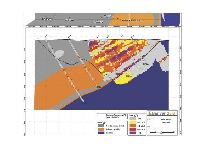 - 0.51 g/t Au over 49.5 metres from 140.5 metres in MQ-20-80