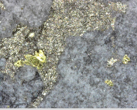 Image 1: Showing a photograph of visible gold from Hole AX-21-91, which assayed 7.80 g/t over 1.5 m from 95.7 m
