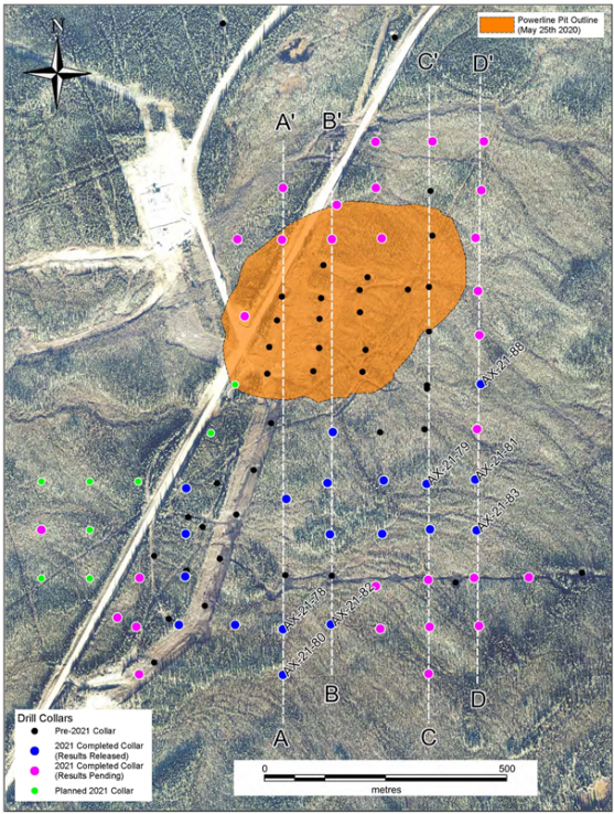 Figure 2: Plan map of Powerline Zone 2021 drill holes reported, planned and completed.