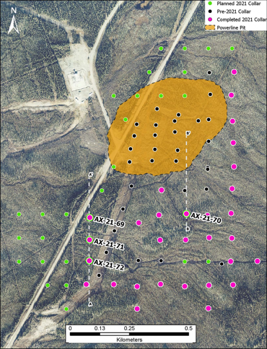 - 0.55 g/t Au over 51.9 metres from surface 115.8 m in AX-21-71